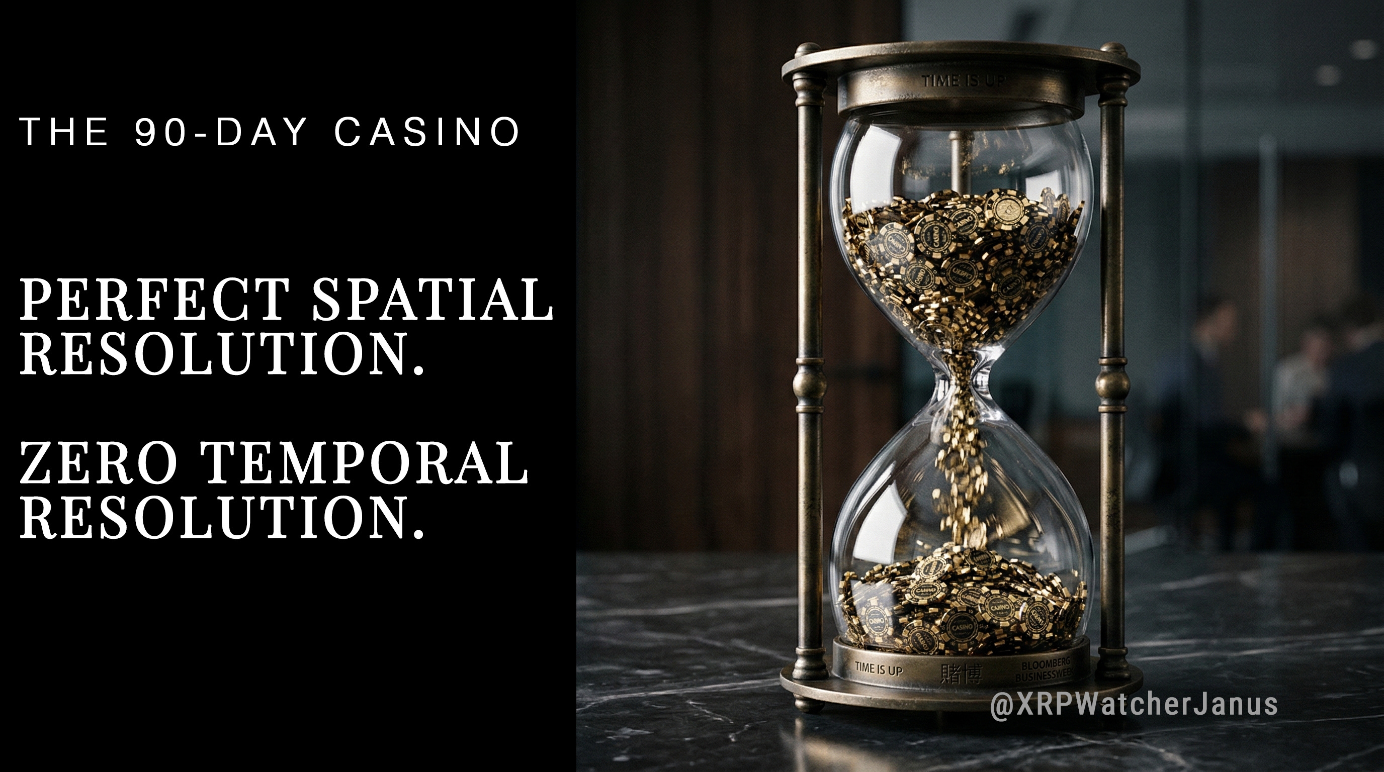 Those who control a game’s rules design it to reward compliance within the existing time structure. The ninety-day cycle is not a law of nature. It is a constraint imposed by the available instruments. Change the instruments — extend the maturities, build the curve — and you change the game. The patient do not need the casino to reform. They need it to stay exactly as it is, while they operate on a different clock.
